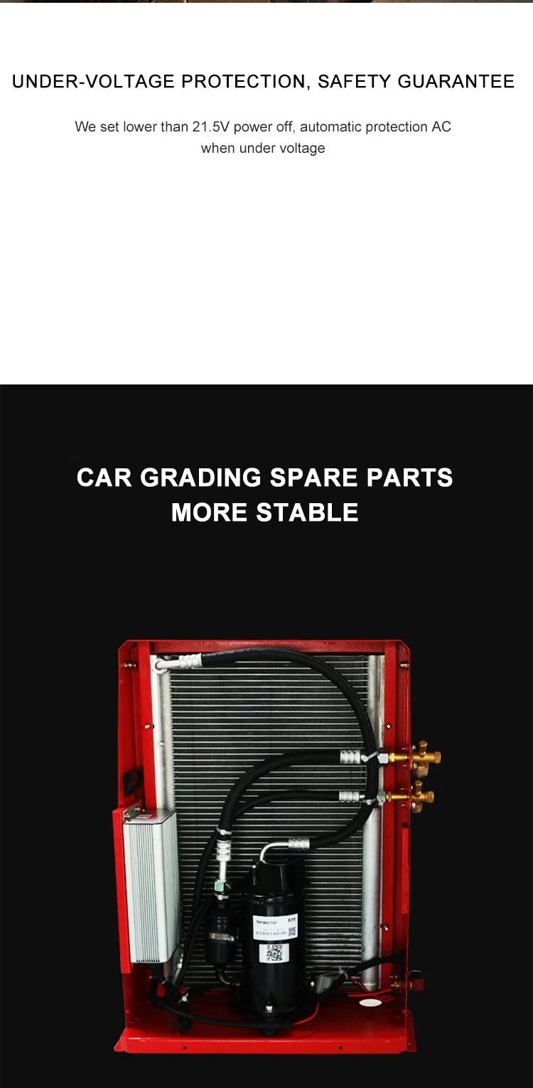 5.Compact & Durable Design: This electric split type 12v 24v parking air conditioner features a compact and lightweight design, weighing only 26kg, along with external and internal machine sizes of 47*19*64cm and 63*18*30cm, respectively. Its durability makes it an ideal choice for long-lasting cooling performance.