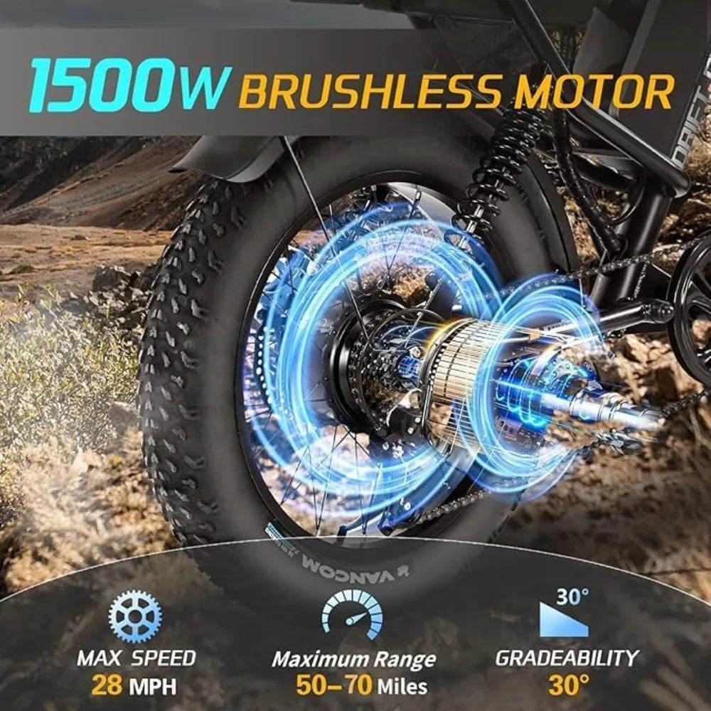 - Unmatched Battery Life - The off road electric bike boasts a 48V 20.8Ah removable battery, offering up to 70 miles with pedal assist or 30 miles on electric power alone. Charge directly or at home with a 6-7 hour full charge time. Explore longer with the moped style electric bike, perfect for adults craving e-bikes with fat tires. Your ultimate mountain bike choice for extended adventures