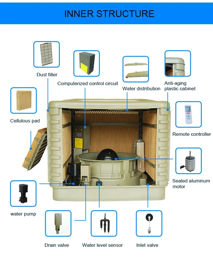 The evaporative air conditioner from Alibaba china will provide substantial energy saving over refrigerated air units. The simplicity of the design allows low maintenance requirements. The electric water air conditioner, air cooler without water and other evaporative air coolers will provide fresh, filtered air. The outside air that has been cooled will blow the stale inside air out.