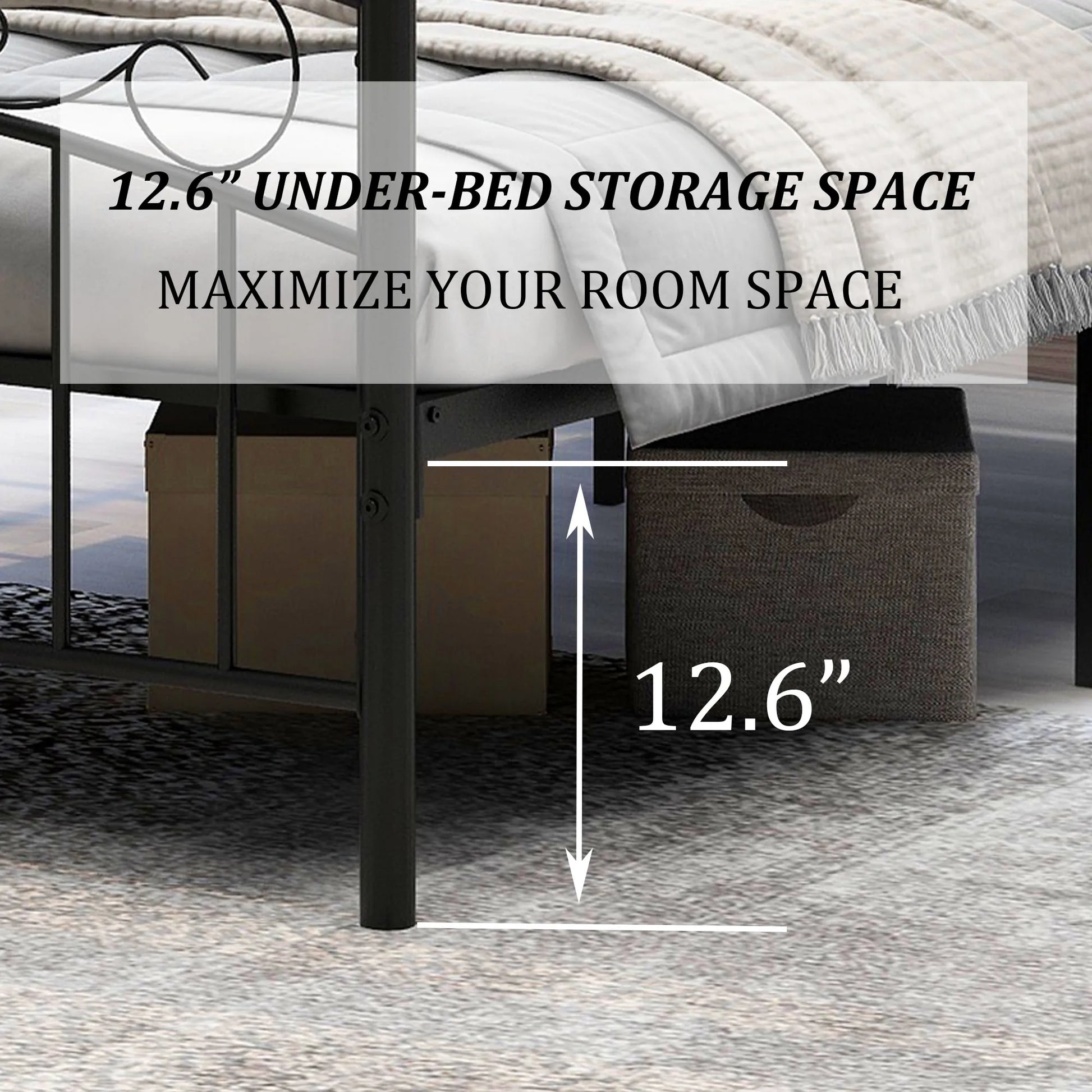 Canopy Bed Frame Four-Poster Metal Platform with Headboard and Footboard Sturdy Heavy Duty Steel Slat Support
