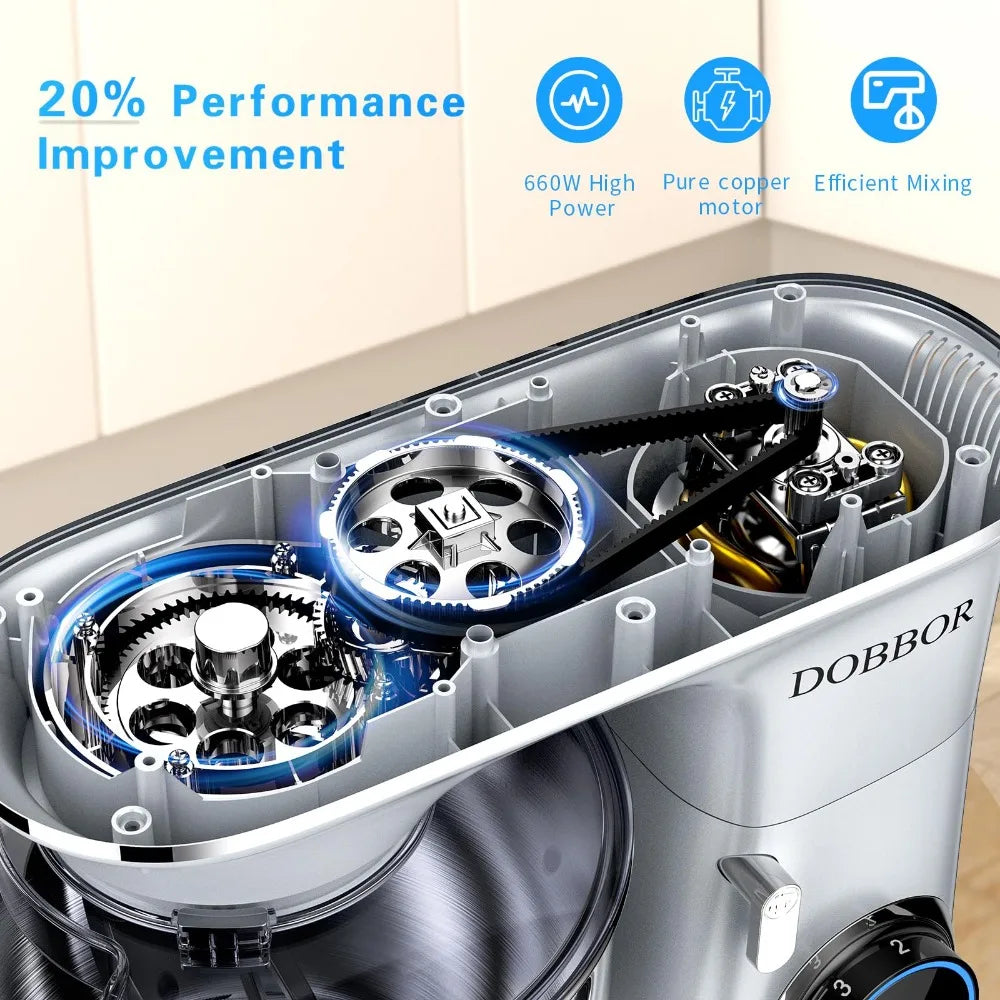 【Upgraded Mixing System & 9.5 Quarts Capacity 】- Professionally designed with planetary mixing system, which can evenly mix the ingredients in the bowl with low noise (<40dB). 9.5 quart stainless steel mixing bowl is large enough to meet the daily use of the family which can up to 10 people, handle on the bowl is more durable and convenient for you to take.