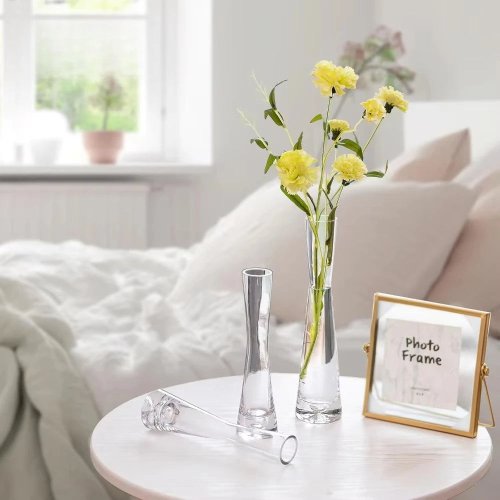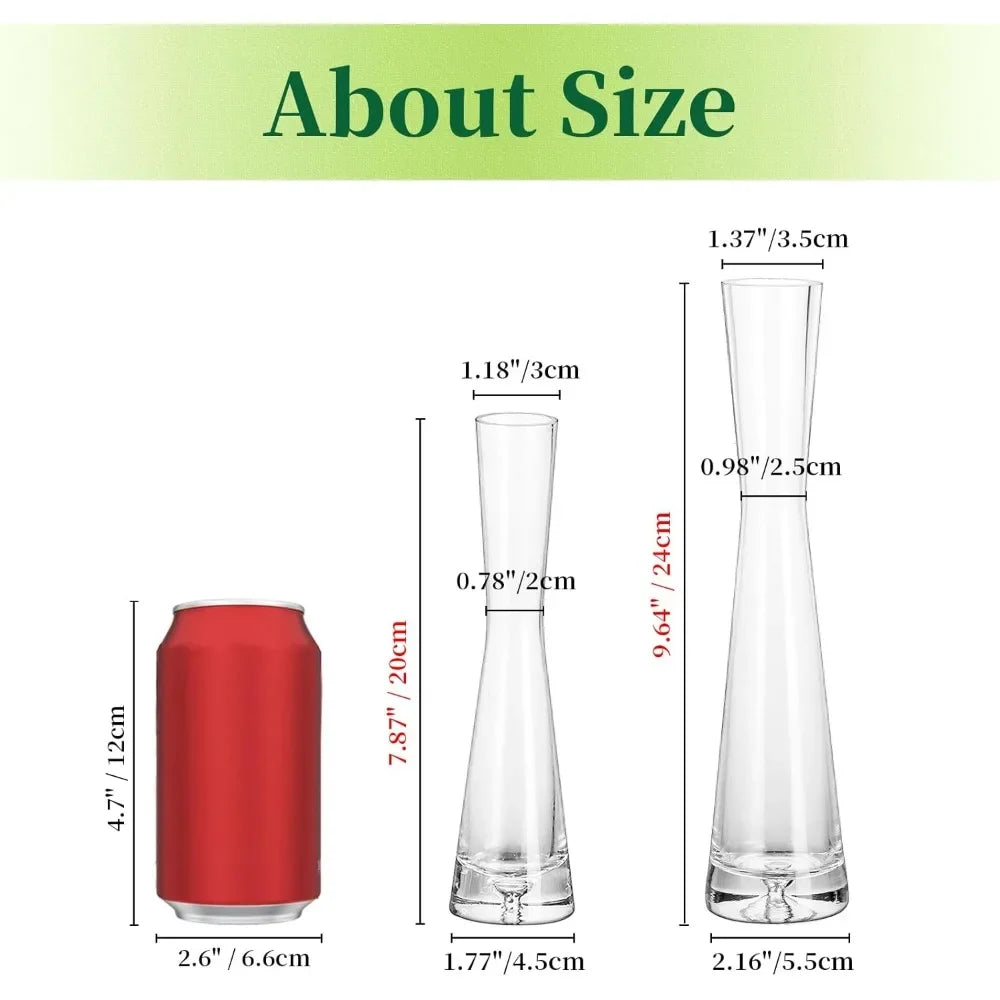 - HANDMADE STABLE VASES – These glass bud vases for flowers are made of recycled thick crystal glass through hand-blown process. With minimalism design, Slim waist shape and stable weighted base, These tall skinny vases shall brighten your home with a touch of warmth.