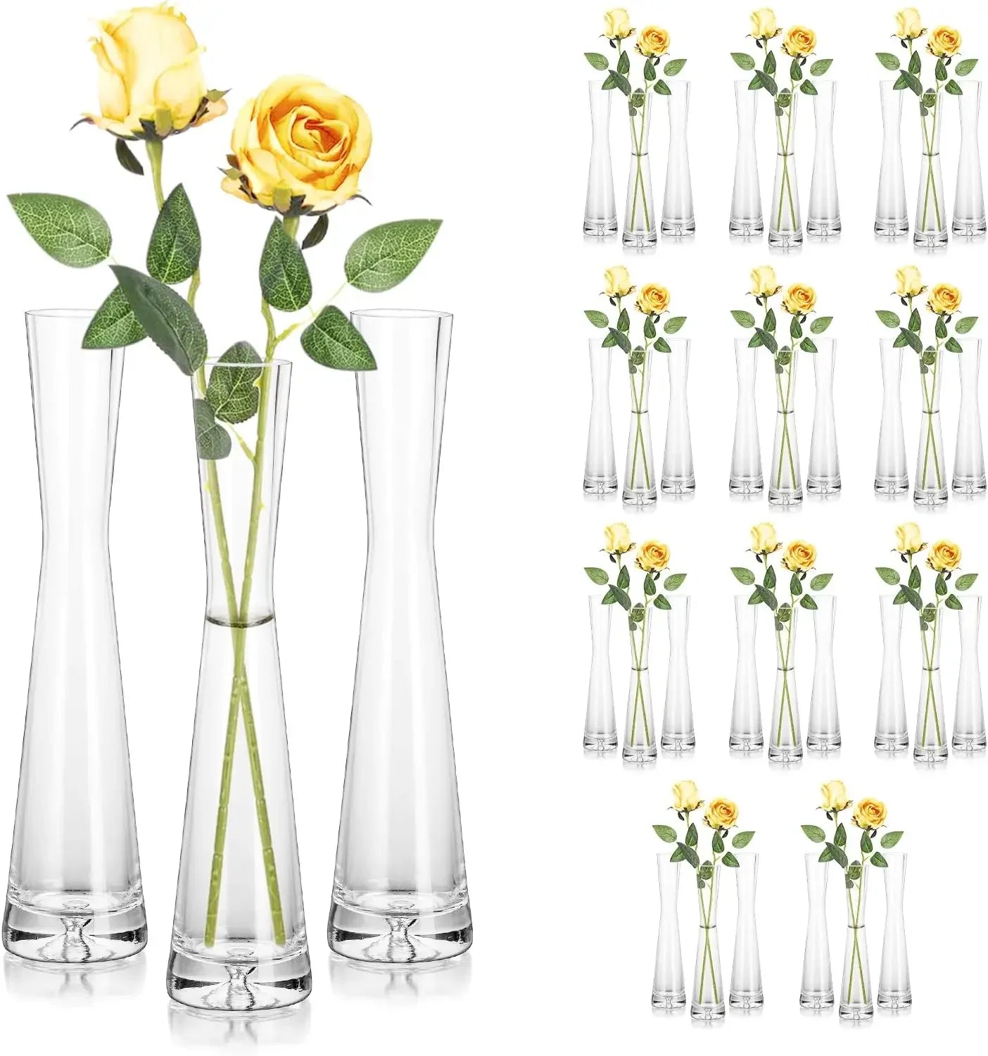 Glass Bud Vases for Centerpieces Set of 36, Handmade Modern Clear Small Skinny Decorative, Vases