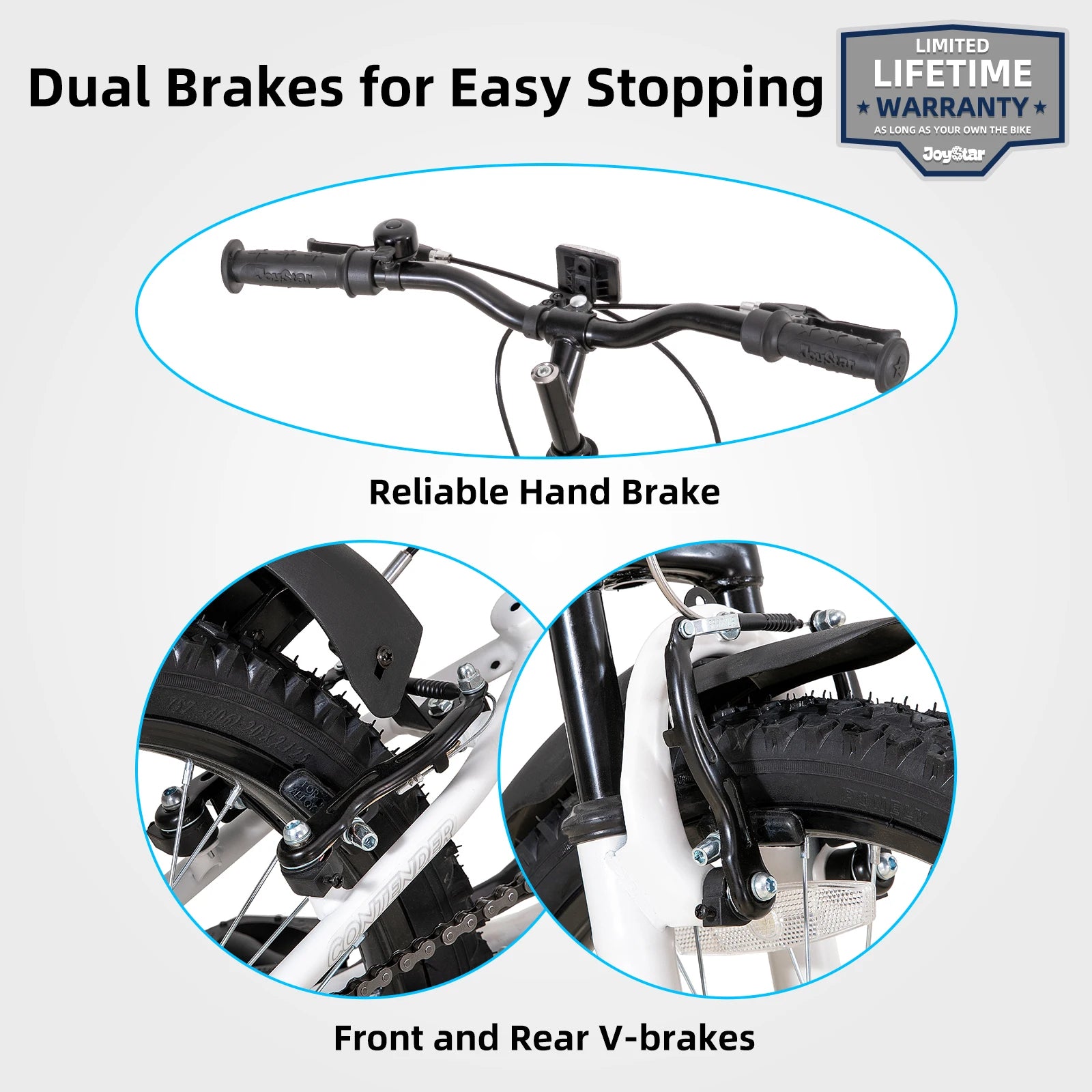 Safety: Front & Rear V-brakes, kickstand included.