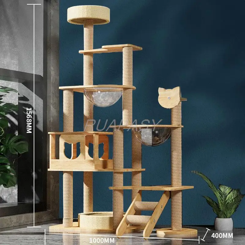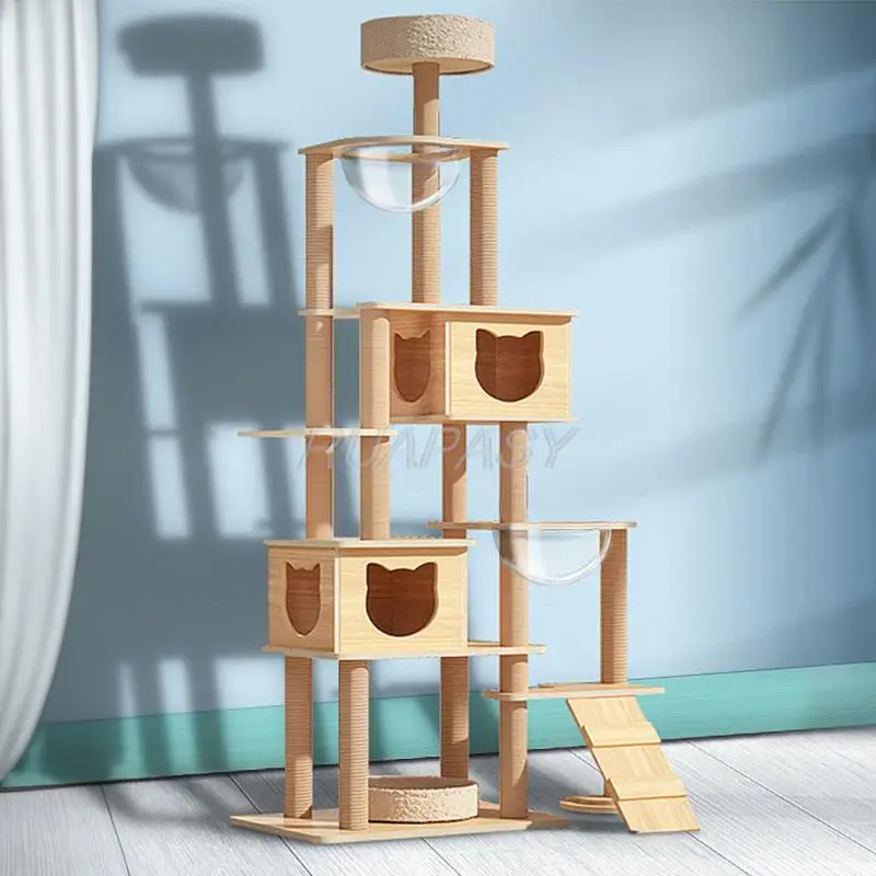 Multi-Level Wood Cat Tree Shelf Jumping Platform Cat Tree Toys Post Condo Cozy Perch Nest Scratcher Tower Scratching Climbing