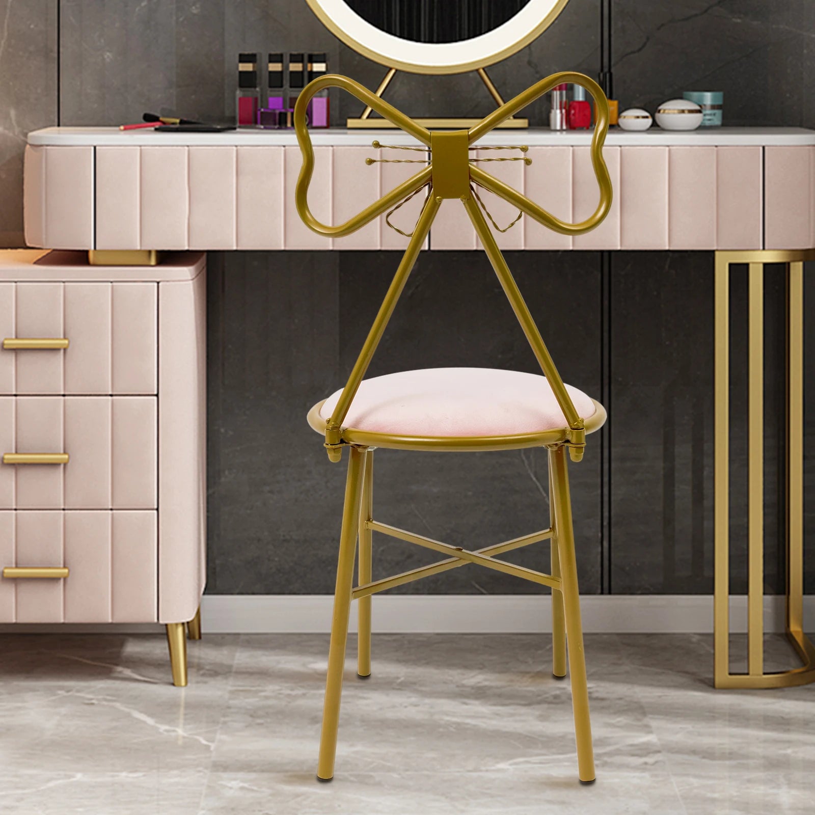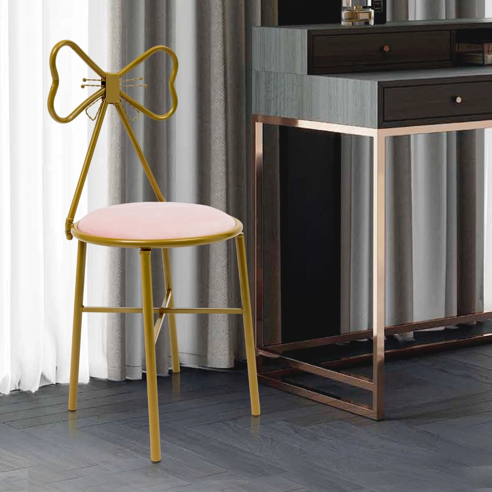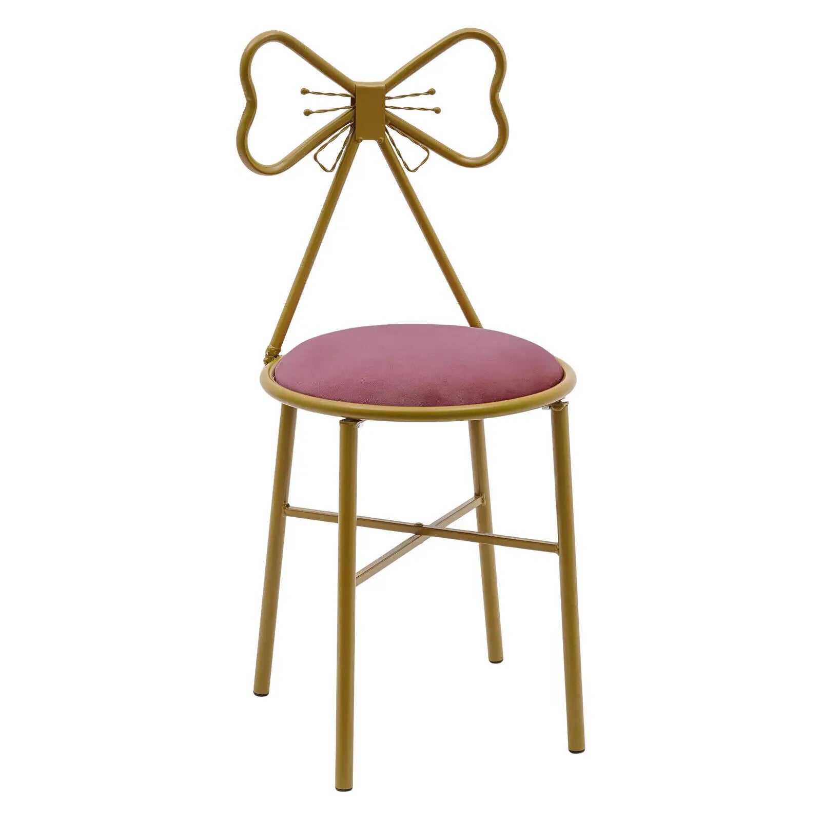 Vanity Stool Chair Makeup Modern Velvet Butterfly Accent Chair Pink Cute Girls Bow Knot Backrest Chair Bedroom Home Decor