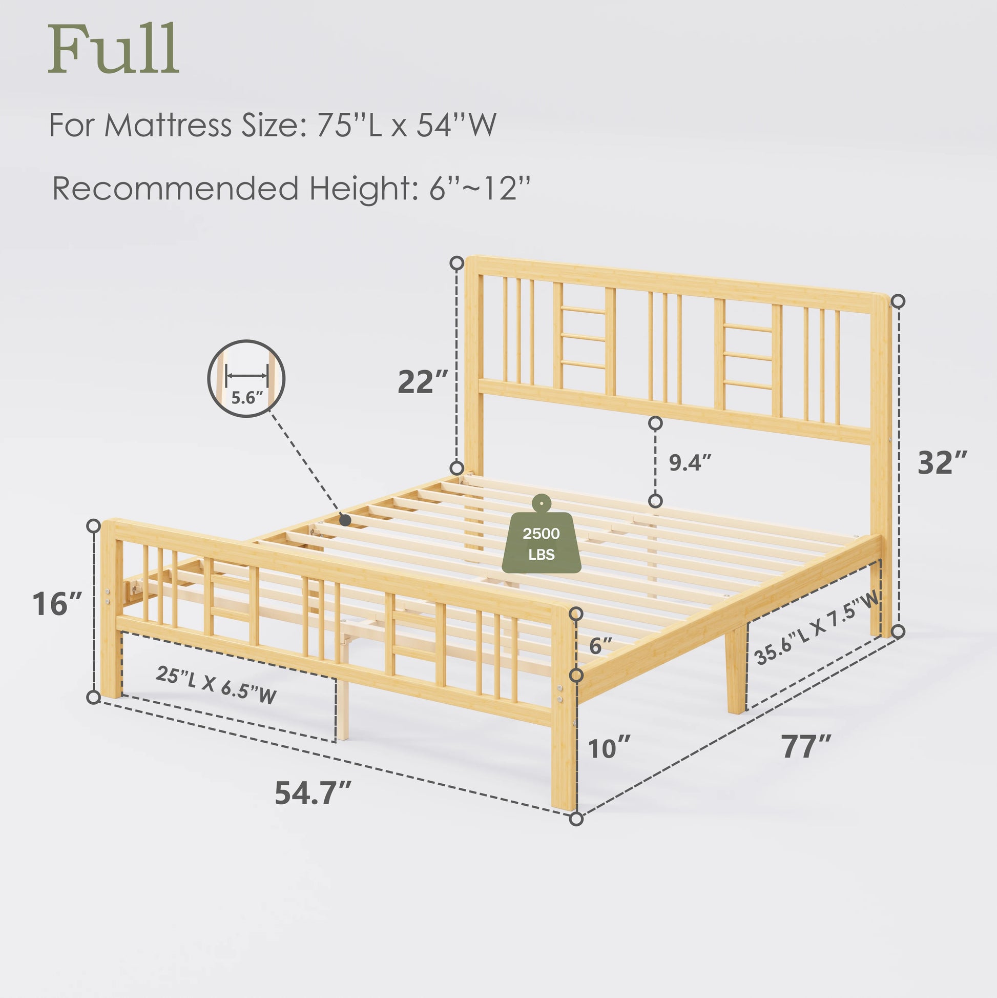 ZIYOO 10 inch Full-Size Premium Bamboo Bed Frame - Comfortable, Safe, Easy to Assemble Modern Minimalist Design